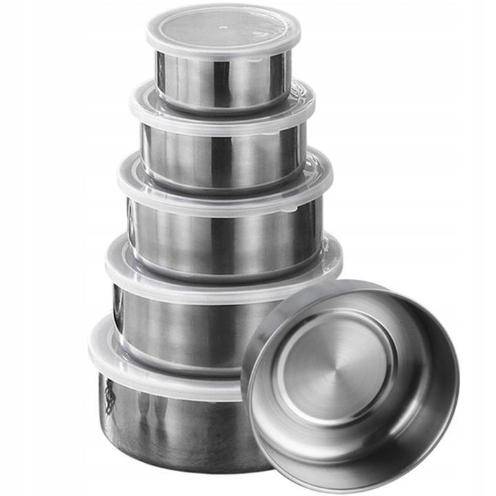 5DB-OS ROZSDAMENTES ACÉL TÁL SZETT FEDŐVEL KONYHAI TÁROLÁSHOZ