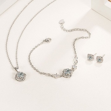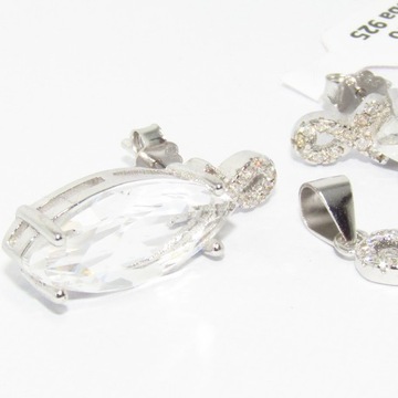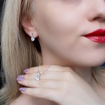 Nagy méretű ezüst könnycsepp ékszer szett csillogó cirkóniával, zsinórral