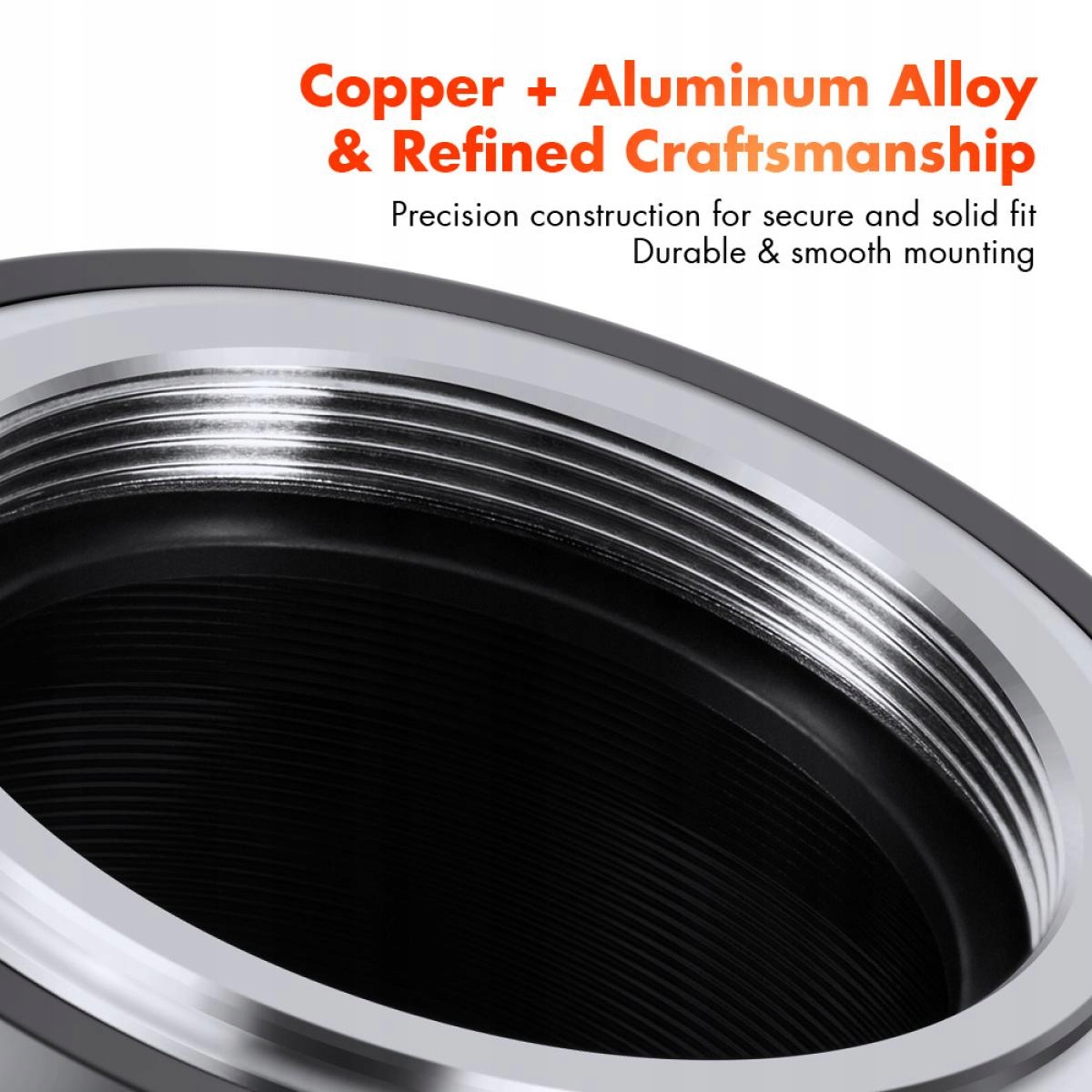 Ez az adapter PRO változata, amelyet a m.in jellemez. Speciálisan mattított bevonat a belső falakon, amely csökkenti a fényvisszaverődések és a vakuk kialakulásának kockázatát. A PRO változat speciálisan kialakított, robusztusabb csattal rendelkezik. A zárnak köszönhetően, amely szükség esetén levehető (pl. Fontos a Takmarok számára) az adapter lehetővé teszi a zökkenőmentes együttműködést MINDEN M42 42mm menetes objektívvel.