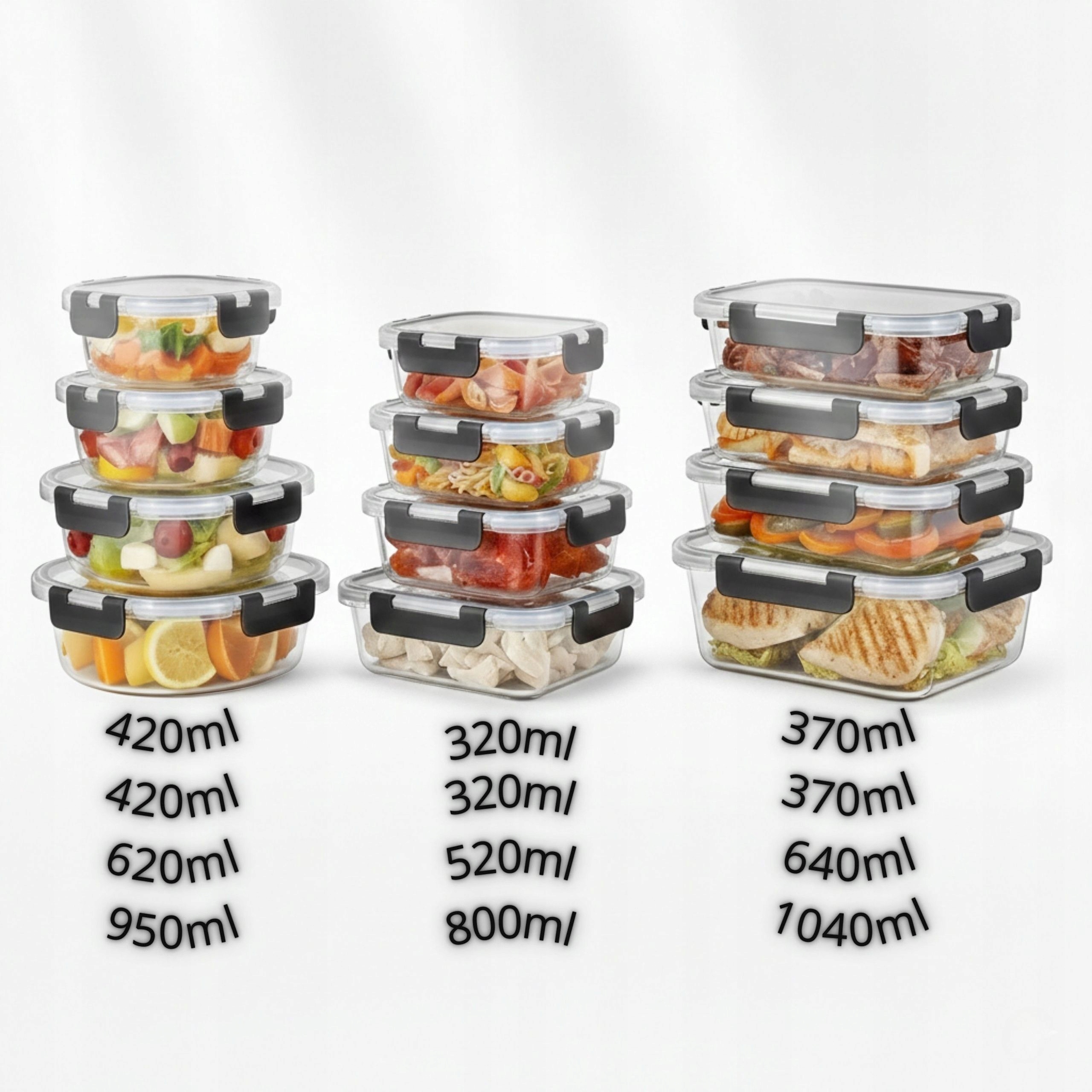 ➡ TÉGLALAP ALAKÚ: 1040ml, 640ml, 2x 370ml