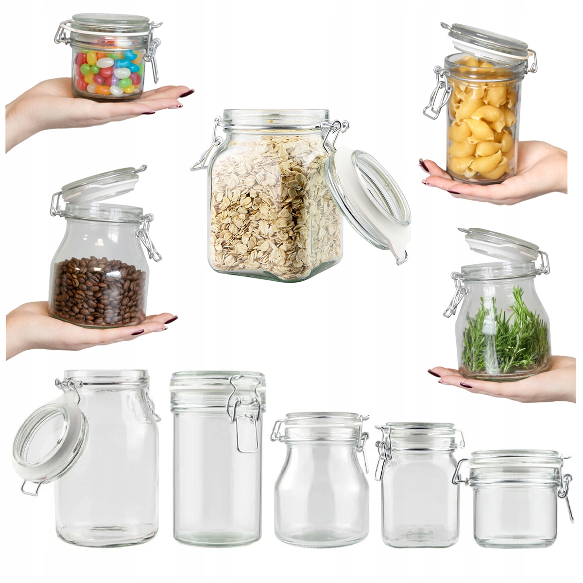 Ezek a befőttesüvegek funkcionális és esztétikai tulajdonságaiknak köszönhetően számos termék tárolására kiválóan alkalmasak. Példák a tartályok használatára: