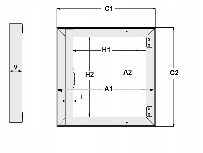 Az ajtólap két fix zsanérral csatlakozik a kerethez, így a szerkezet stabil, és a revízió sikeresen felszerelhető függőleges helyzetben, pl. a falon.