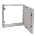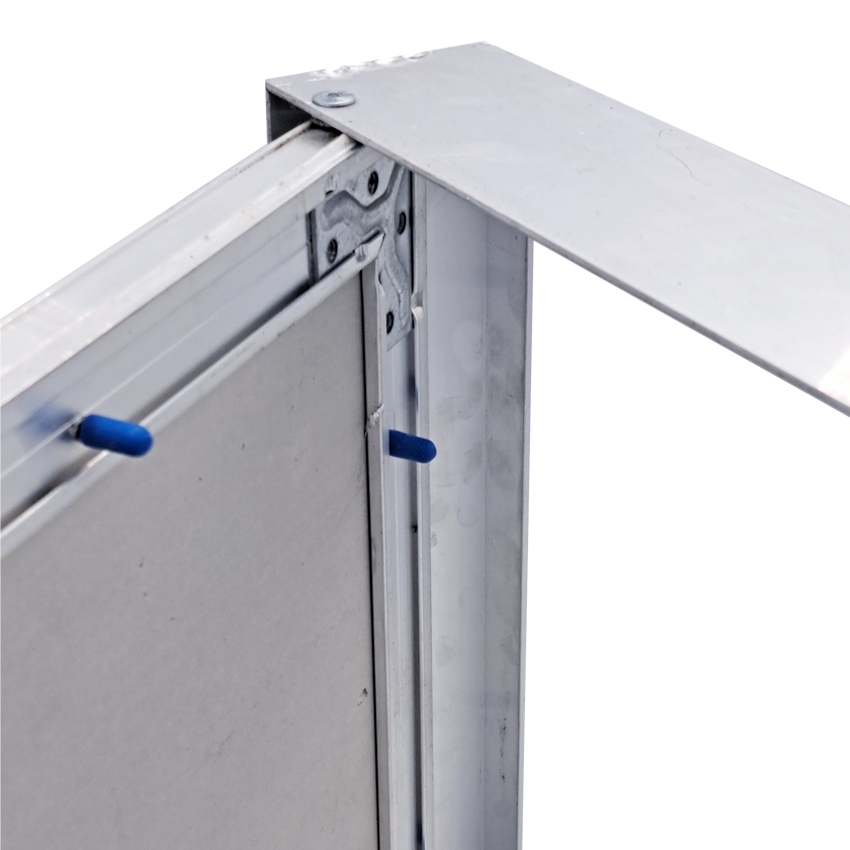 Az ELEVATION RIVET PLUS revíziós ajtó szerkezetét az épület homlokzatára szerelt külső keret és a vízálló Powerpanel H2O lemezzel töltött belső keret alkotja.