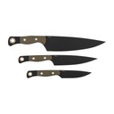 A csomagban három kést kapsz, amelyek változatos rendeltetésűek. A legnagyobb séfkésként funkcionál, így a legsokoldalúbb modell lesz, amely kiválóan alkalmas húsok szeletelésére és zöldségek aprítására. A valamivel kisebb utility knife kiválóan alkalmas baromfik feldarabolására, nagyobb méretű zöldségek elkészítésére vagy halak nyúzására. A legkisebb - pairing knife - viszont mindenféle precíziós munkához használható - például kocsányozáshoz vagy hámozáshoz.