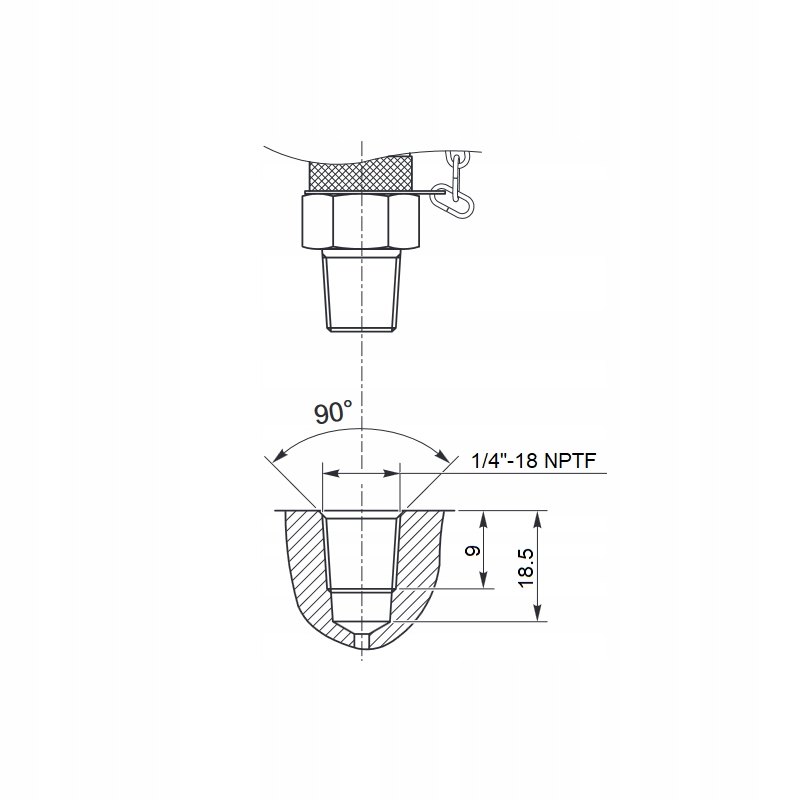 Zárt hidraulikarendszerek olajnyomásának mérésére szolgáló vezeték, amelyben a hidraulikanyomás kialakításának feltételei vannak. Alkalmas a G1/4” külső menettel rendelkező nyomásmérőkhöz. A kenőanyag felhordására is használják a gépek és berendezések szervizelése során, valamint az olaj mintavételére a szennyeződés és a kopás vizsgálatához. A csatlakozó lánccal ellátott menetes kupakkal rendelkezik, amely védelmet nyújt az időjárás viszontagságai ellen. Tömíti a csatlakozót, miközben a mérő- vagy szervizkészlettel ellátott kábel le van választva. Ez a megoldás lehetővé teszi, hogy a csatlakozót tartósan hagyja, még akkor is, ha a gép nyomás alatt működik, és a mérő- vagy szervizkészlet le van választva.