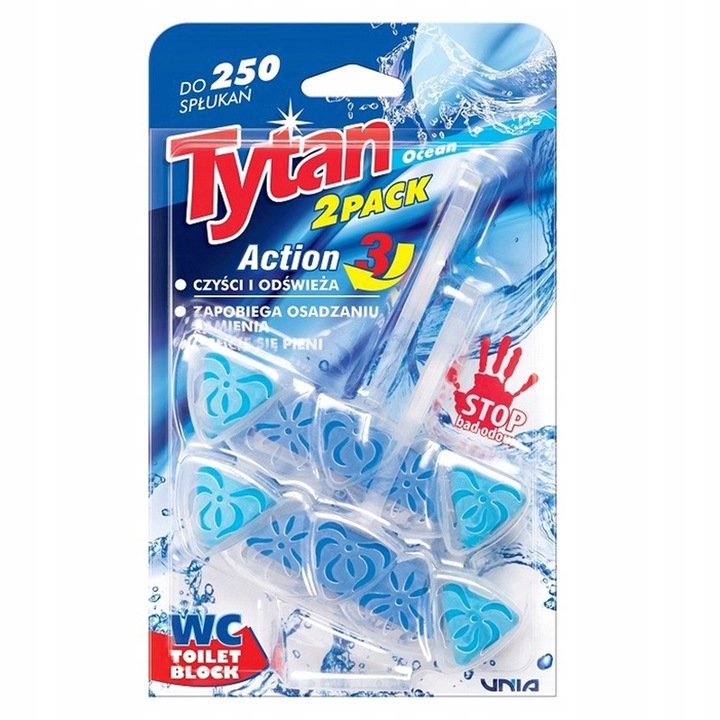A WC Tytan Action 3 Ocean WC-kocka tiszta, biztonságos és vízkőmentes WC-t biztosít jó áron. Természetesen az Action 3 Tytan WC-kocka tengeri illattal gondoskodik a higiéniáról a WC-ben. Megakadályozza a vízkőlerakódást, makulátlan tisztaságot, bőséges habot, intenzív és kellemes illatot hagy maga után! Ez egy új generációs dobókocka, amit már az első használat után látni fogsz!