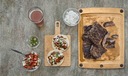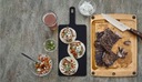 Tegye még élvezetesebbé a konyhai feladatokat ezzel a stílusos, a fenntarthatóság jegyében készült, praktikus fogantyúval ellátott Handy sorozatú vágódeszkával. Ez a papírkompozitból készült, elegáns deszka karcsúsága ellenére rendkívül strapabíró. A kések nem tompa, akár 175°C-ig hőálló felületének köszönhetően kiválóan alkalmas mind az ételek elkészítése során történő aprításra, mind azok tálalására. Adj az ételeidnek egy teljesen más dimenziót!